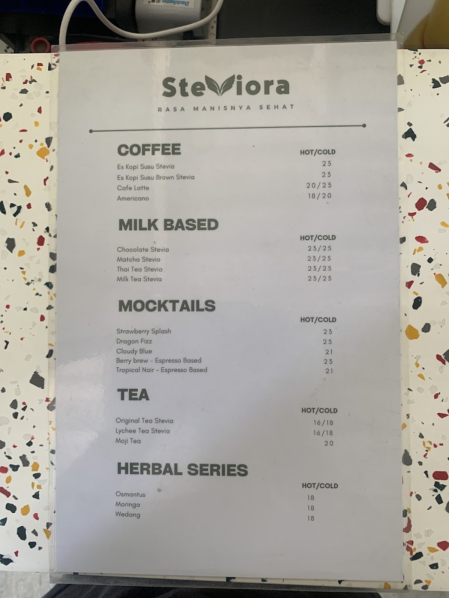 Steviora Cafe stands out for its signature use of stevia instead of regular sugar, offering a healthier way to enjoy your favorite beverages. Customer favorite, the es kopi susu stevia, exemplifies this approach. Diners rave about its creamy texture and robust coffee flavor, perfectly balanced with a natural sweetness that sets it apart.